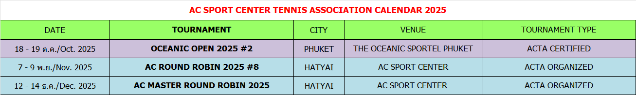 ผลการแข่งขัน AC TENNIS INDOOR OPEN 2023
