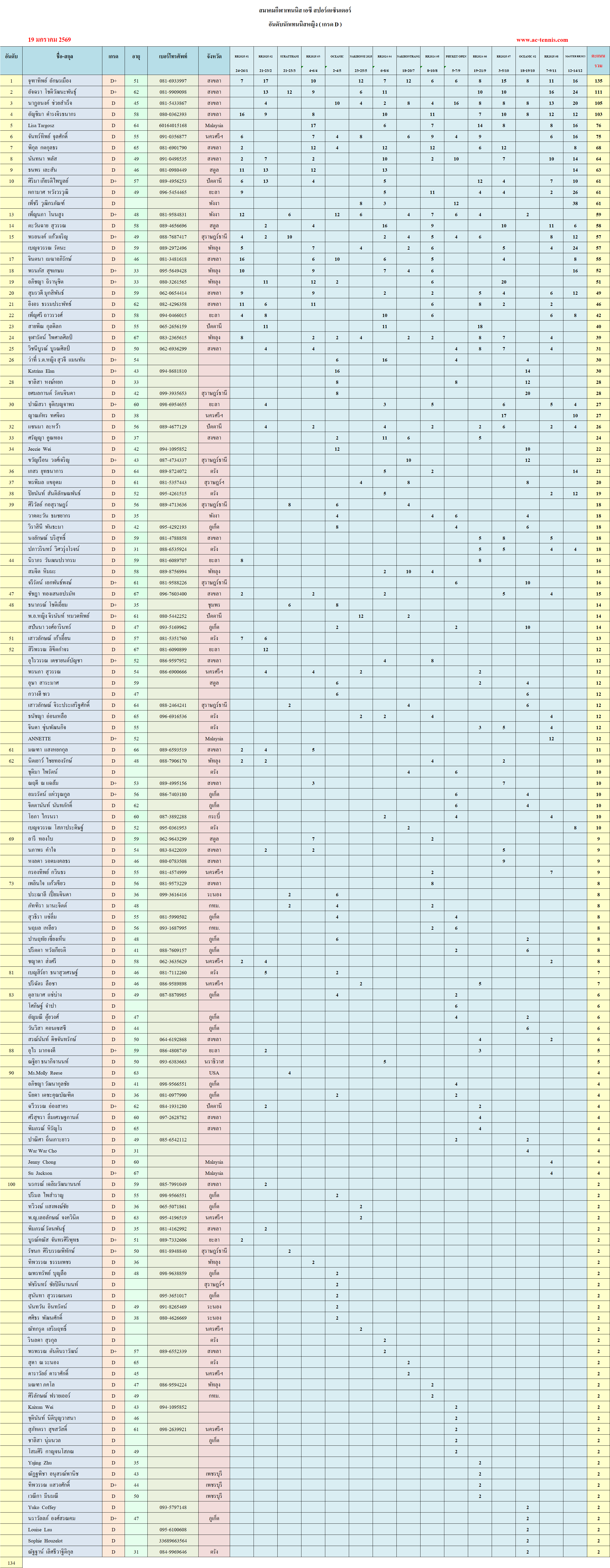 เกรดนักเทนนิสหญิง