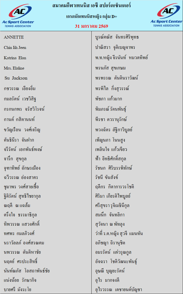 เกรดนักเทนนิสหญิง