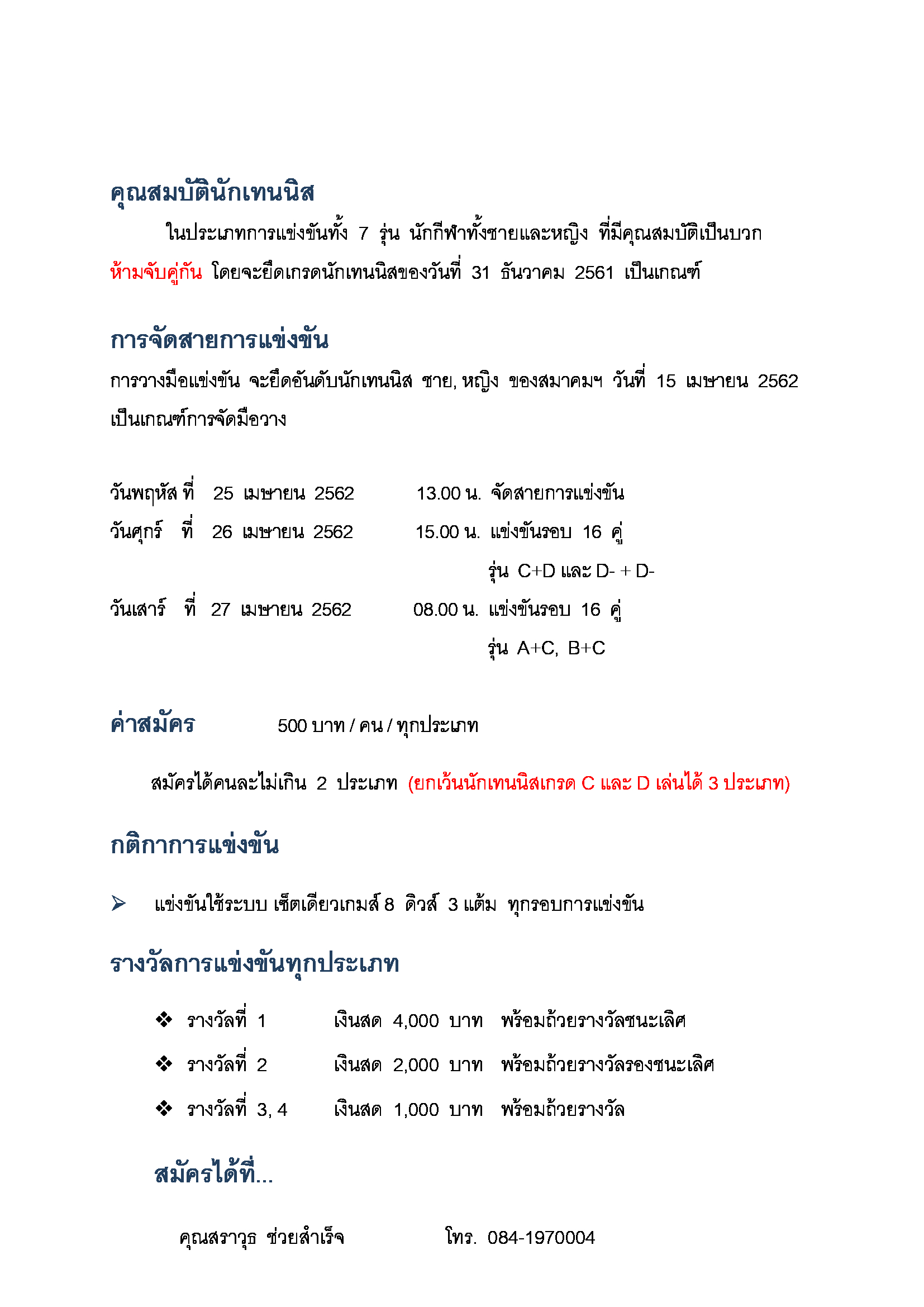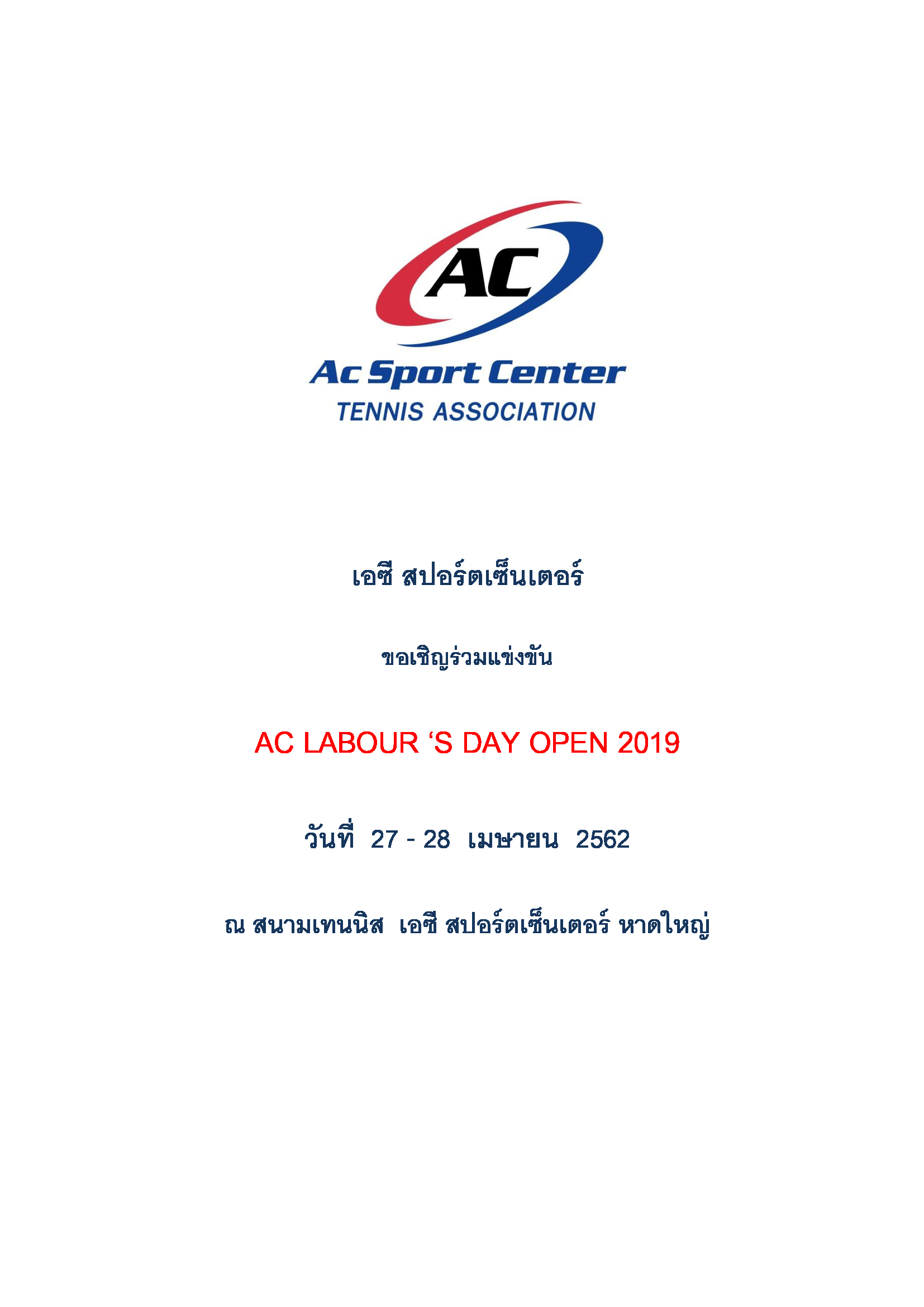 ขอเชิญร่วมการแข่งขัน AC LABOUR ‘S DAY OPEN 2019 วันที่ 27 – 28 เมษายน 2562
