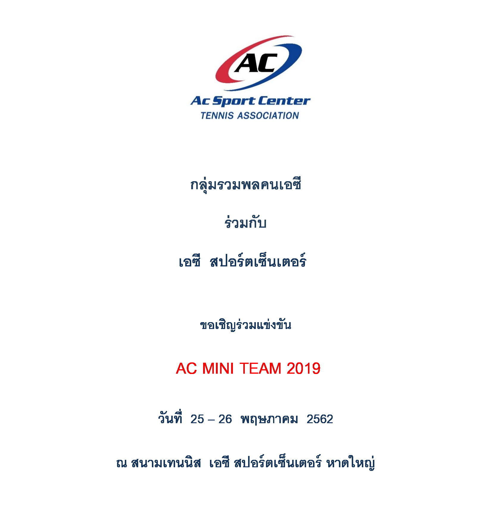 ขอเชิญร่วมการแข่งขัน AC MINI TEAM 2019 วันที่ 25 – 26 พฤษภาคม 2562