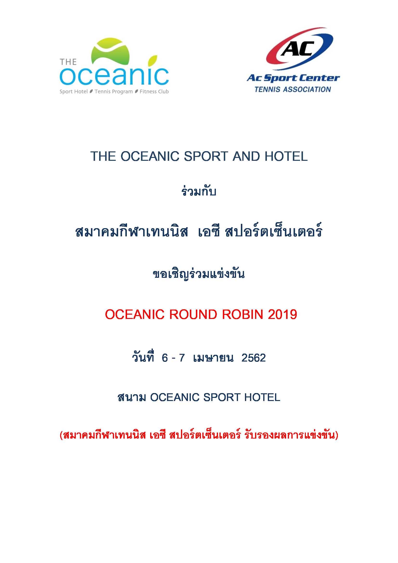 ขอเชิญร่วมการแข่งขัน OCEANIC ROUND ROBIN 2019 วันที่ 6 – 7 เมษายน 2562