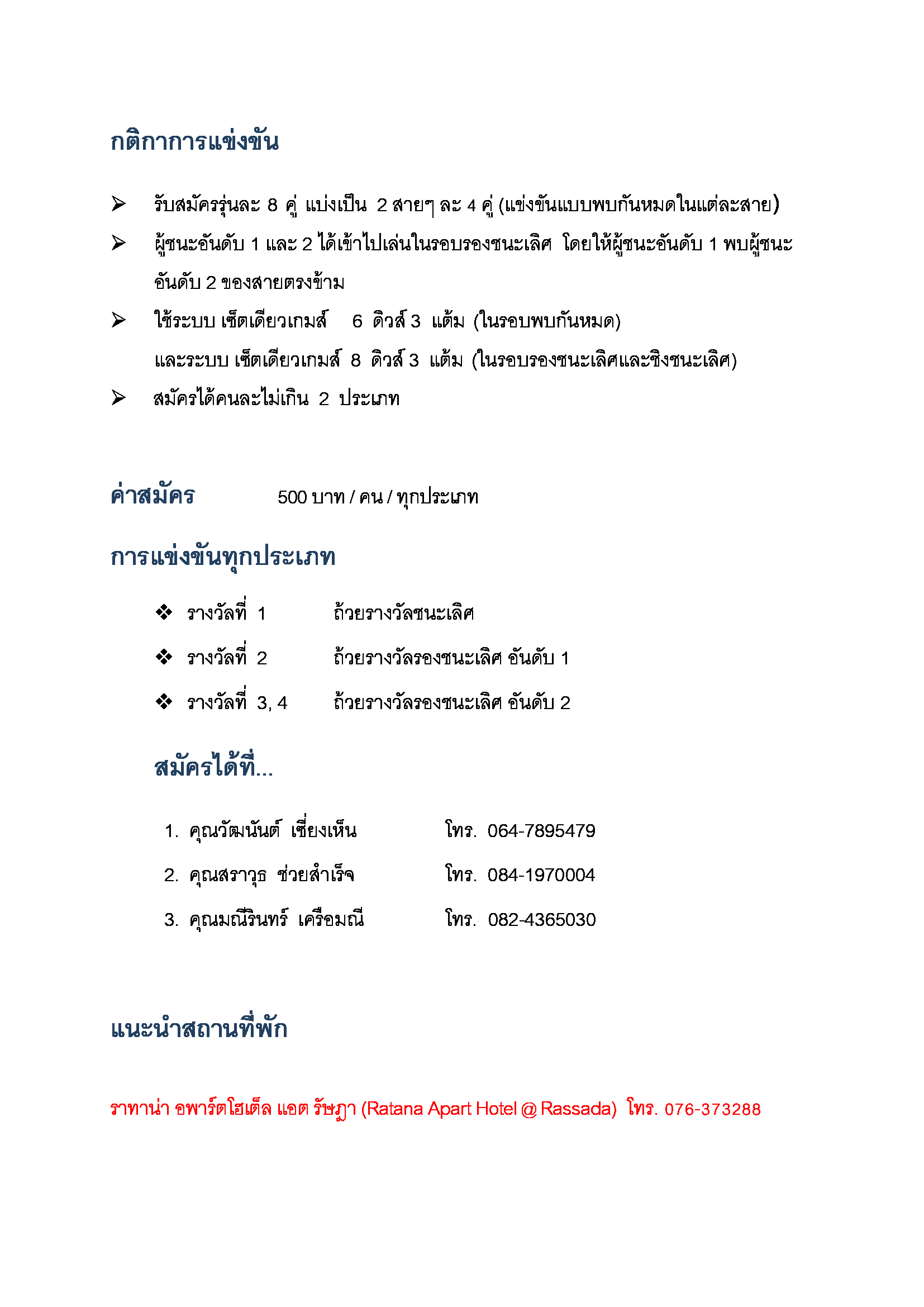 ขอเชิญเข้าร่วมการแข่งขัน BAN TERNG OPEN 2021 ระหว่างวันที่ 6 – 7 มีนาคม 2564