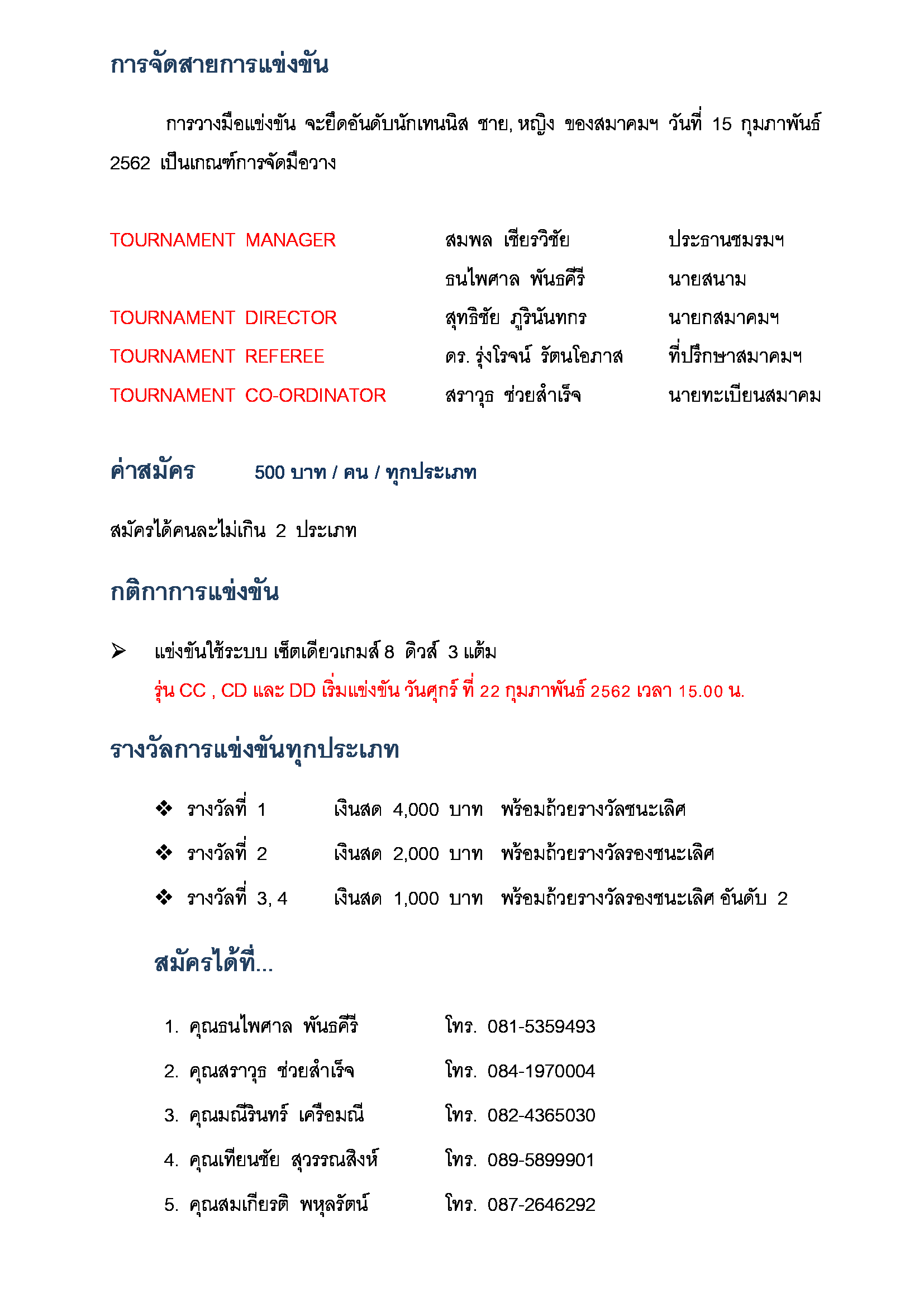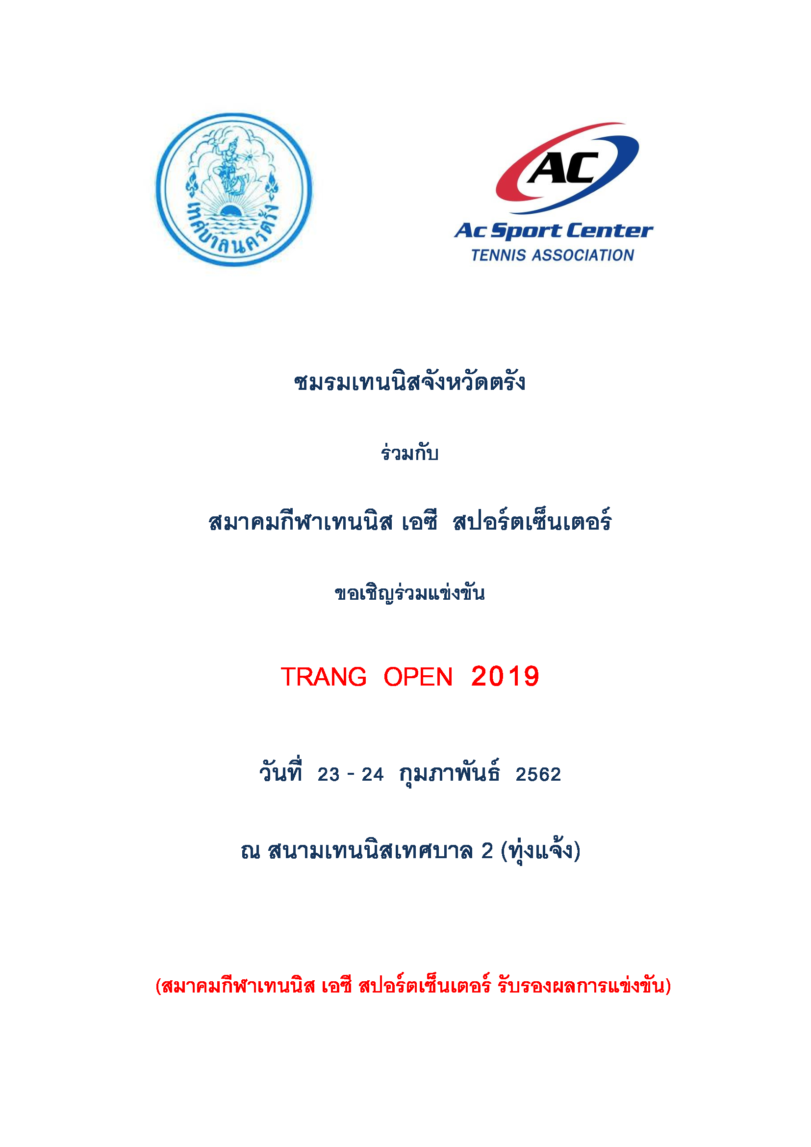 ขอเชิญร่วมการแข่งขัน TRANG OPEN 2019 วันที่ 23 – 24 กุมภาพันธ์ 2562