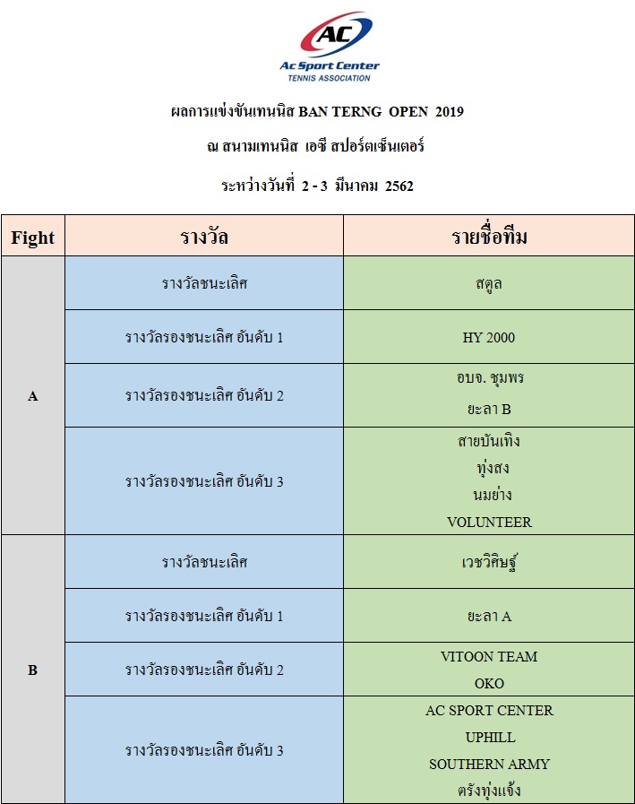 ผลการแข่งขัน BAN TERNG TEAM CD 2024