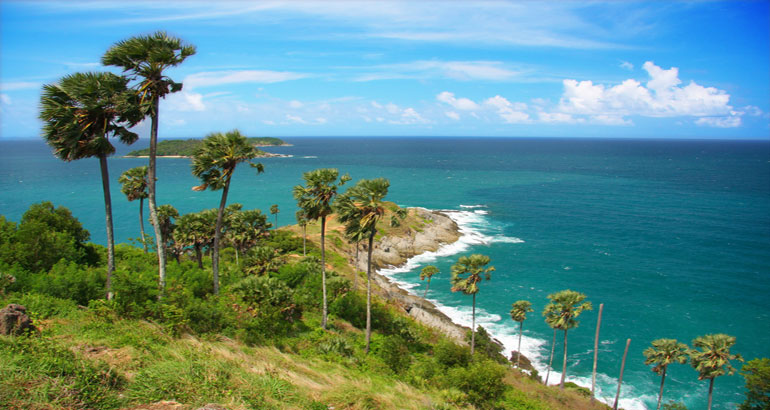 แหล่งท่องเที่ยว ฮอตฮิตที่ใครต่อใครต่างต้องไปเยือนเมื่อไปถึงจังหวัดภูเก็ต โดยรอบมีทัศนียภาพที่สวยงาม อีกทั้งยังเป็นจุดชมพระอาทิตย์ตกดินที่สวยงามมากที่สุดแห่งหนึ่งของประเทศ ไทยเลยก็ว่าได้ นอกจากนี้ยังเป็นที่ตั้งของประภาคารกาญจนาภิเษก โดยสุดปลายของแหลมพรหมเทพ มีชื่อว่า “แหลมเจ้า” บริเวณตัวแหลมซึ่งยื่นออกไปในทะเล โดดเด่นด้วยต้นตาลที่ยืนตระหง่านเกาะกลุ่มกันอยู่อย่างสวยงาม ฉะนั้นใครที่อยากชมแสงสุดท้ายของวันที่สวยที่สุด…ต้องมาที่นี่ !