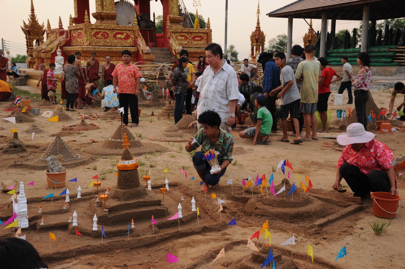 ๔. สถานที่ทำบุญ วัดเป็นสถานที่ทำบุญสวดมนต์เลี้ยงพระ และทำต่อเนื่องกันหลายวัน เมื่อทำความสะอาดกุฏิที่อาศัยแล้ว ยังต้องทำความสะอาดหอสวดมนต์ โบสถ์ วิหาร ศาลาการเปรียญ ตลอดจนลานวัด เพื่อให้ดูร่มรื่นชื่นตาชื่นใจของผู้มาทำบุญในวันสำคัญ เพราะต้องใช้ในกิจกรรมหลายอย่าง ได้แก่ การทำบุญตักบาตร สวดมนต์ เลี้ยงพระ การฟังเทศน์ การก่อเจดีย์ทราย สรงน้ำพระ บังสุกุลอัฐิ การปล่อยนกปล่อยปลา บางวัดชาวบ้านยังใช้ลานวัดเป็นสถานที่รื่นเริงสนุกสนาน เช่น สาดน้ำและมีการเล่นอื่น ๆ เช่น ช่วงชัย ชักกะเย่อ เข้าทรงแม่ศรี เป็นต้น