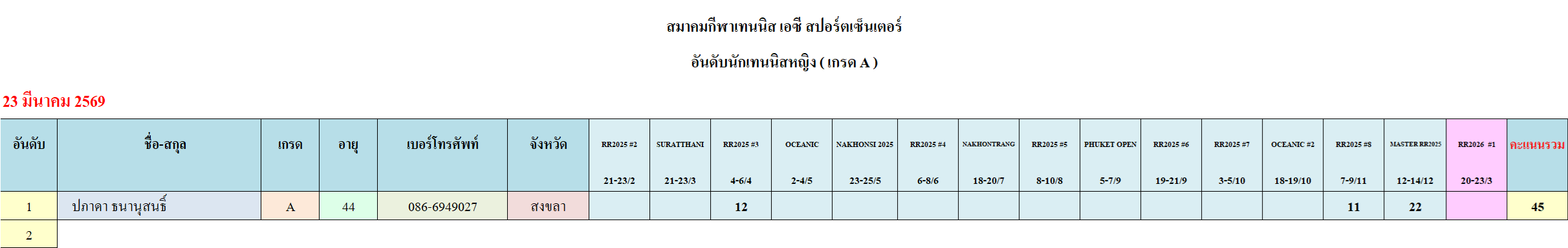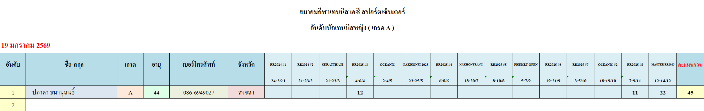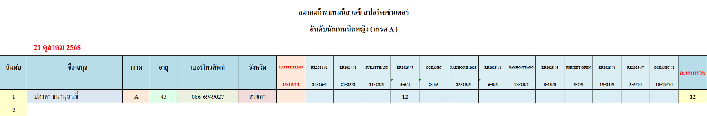 อันดับนักเทนนิสหญิง กลุ่ม A