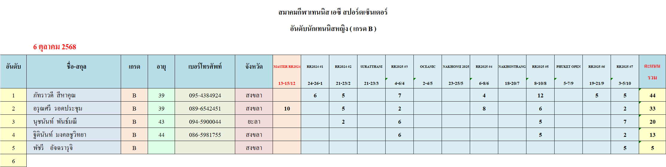 อันดับนักเทนนิสหญิง กลุ่ม B