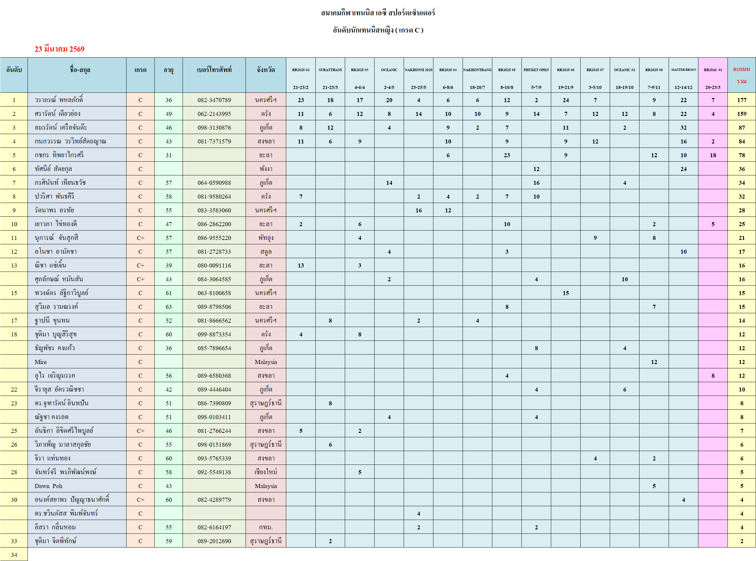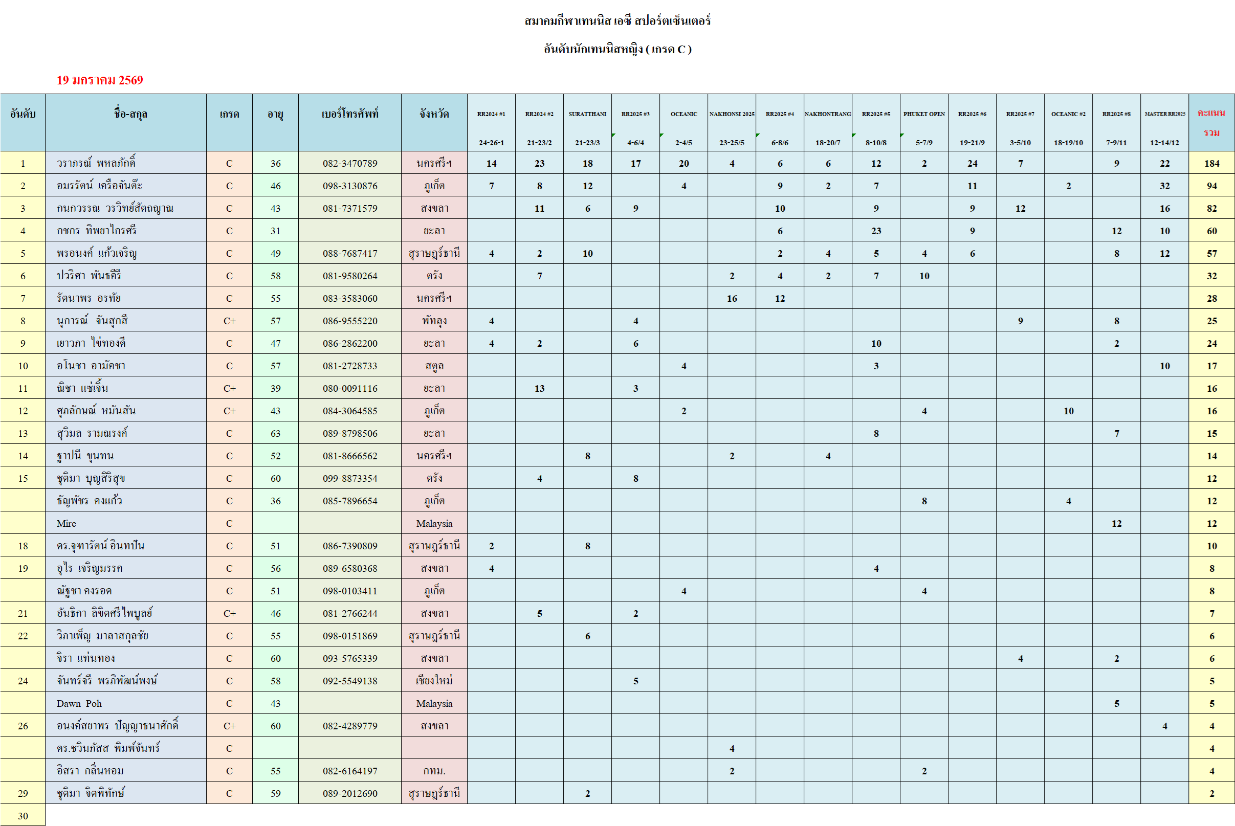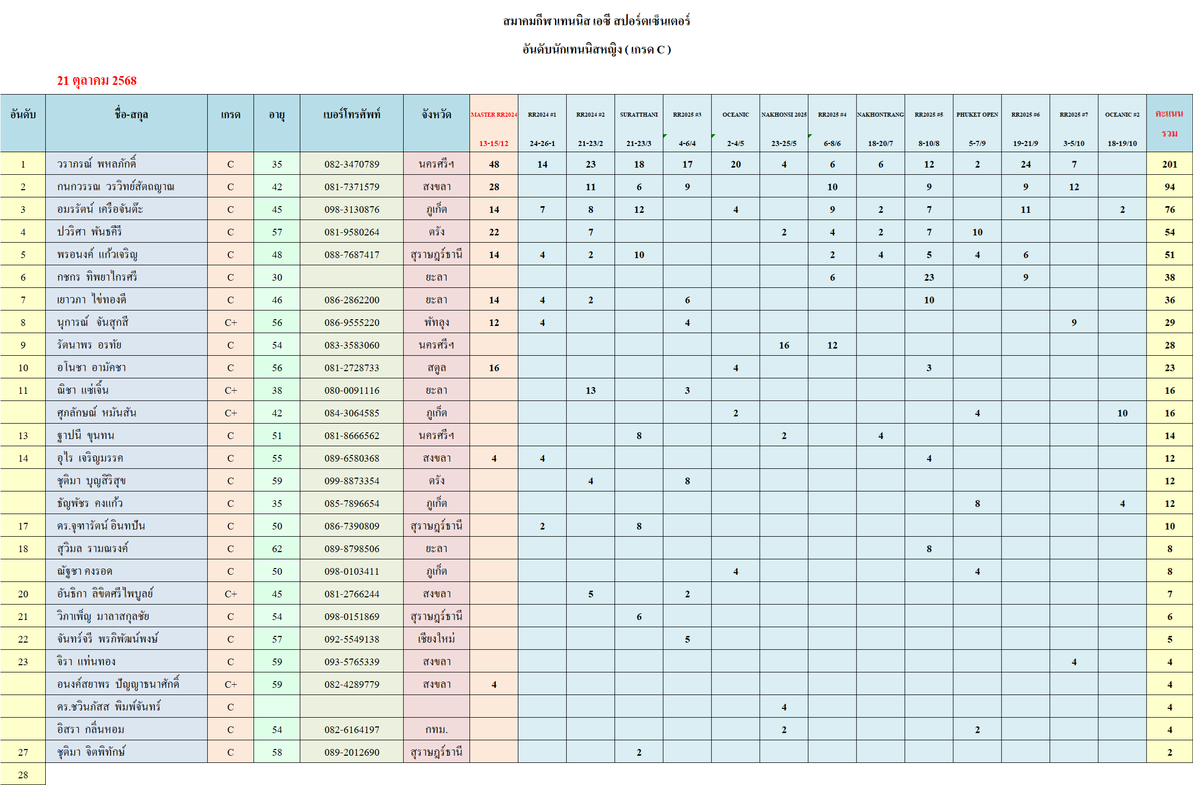 อันดับนักเทนนิสหญิง กลุ่ม C