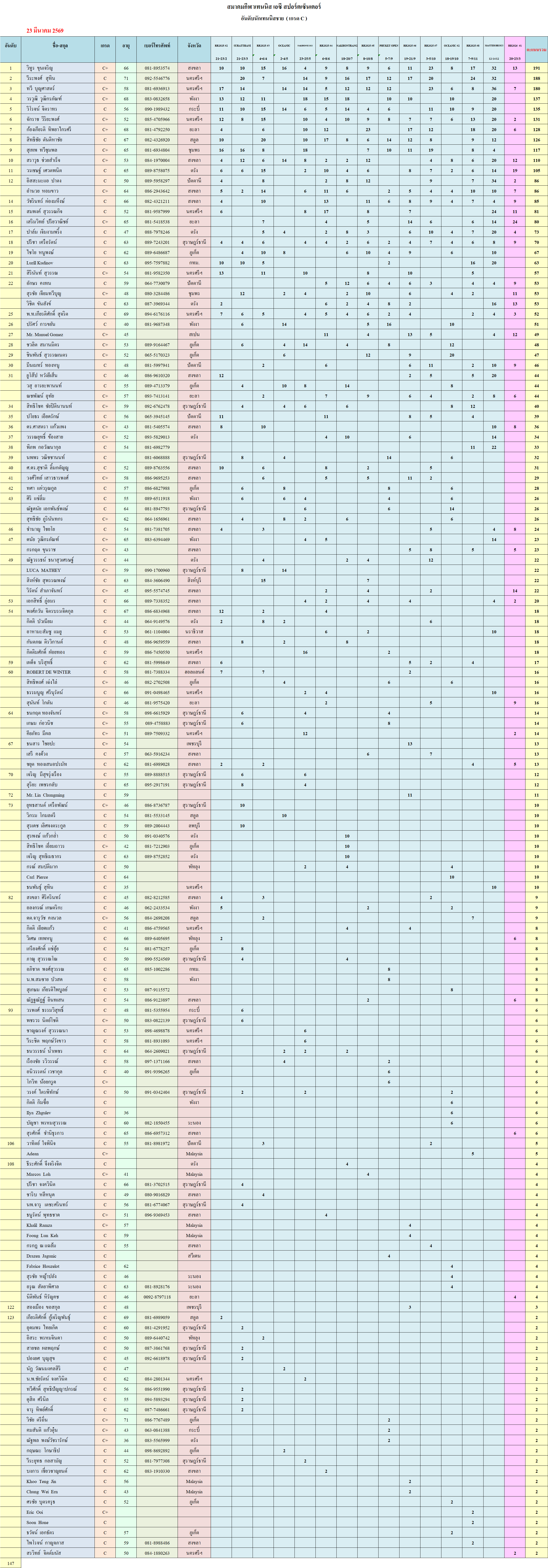 อันดับนักเทนนิสชาย กลุ่ม C